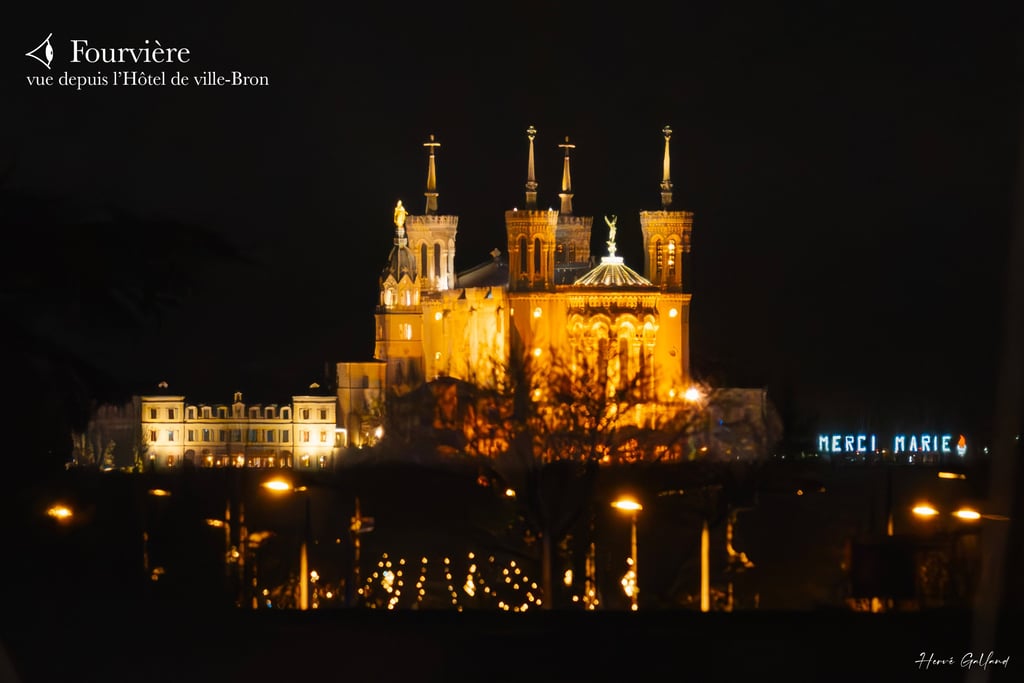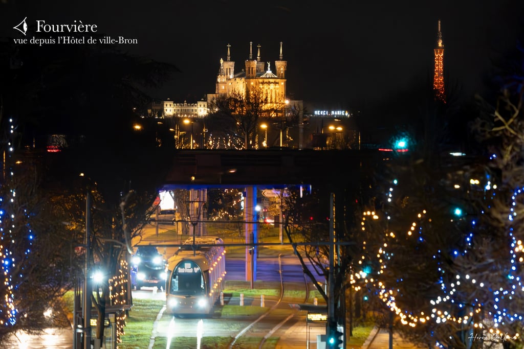 Depuis l’hôtel de ville de Bron, on aperçoit un symbole emblématique de Lyon : la Basilique de Fourvière, majestueuse et intemporelle. Ce point de vue unique rappelle la proximité et les liens étroits entre Bron et la métropole lyonnais.