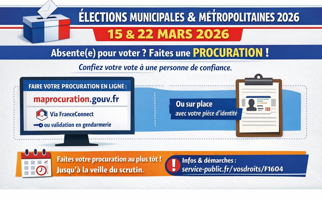 📢Procuration Élections municipales & métropolitaines – 15 & 22 mars 2026