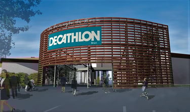 Le Decathlon Village de Bron, installé sur une parcelle de 50 000 m² avec un bâtiment datant des années 1970 d'environ 25 000 m², est en pleine phase de réaménagement majeur pour une transformation complète. Le site, qui abrite actuellement plusieurs commerces comme Decathlon, Grand Frais, Marie Blachère, La Cervoiserie, Alltricks, Genae et Biocoop, ne répond plus aux attentes contemporaines des clients.