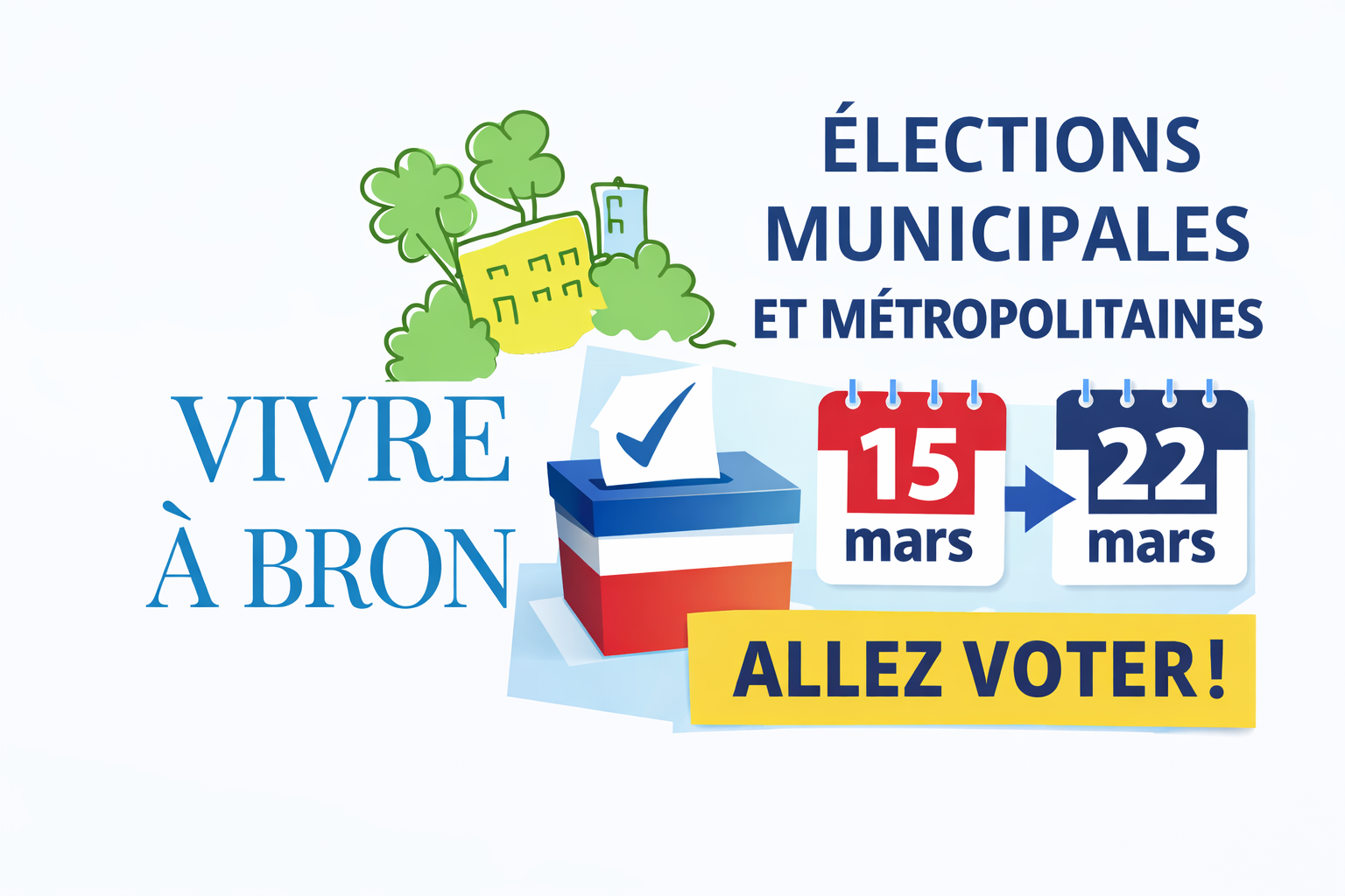 Les élections municipales et métropolitaines auront lieu les dimanches 15 et 22 mars 2026. Cette échéance démocratique est importante pour choisir les élus qui définiront l’avenir de Bron et de notre métropole.